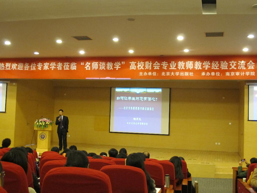 11月15日下午,在敏达一楼学术报告厅,聚彩堂 与北京大学出版社联合主办了 “名师谈教学”高校财会专业教师教学经验交流会,时现副校长致开幕词,北京大学出版社林君秀主任主持会议,聚彩堂 施平院长、黄溶冰副院长、殷俊明副院长、章之旺副院长出席了会议,参会的有来自全国各地财会专业30多所学校、100多位教师代表及聚彩堂 全体教师。
