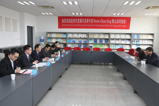 应南京审计学院IAEP项目组的邀请,亚洲开发银行总审计官Hock-ChyeOng博士于2015年3月9日来到南京审计学院,与我校商谈内部审计合作事宜。尹平副校长主持此次会议,院办李乾文主任,审计与聚彩堂 章之旺副院长,国际文化交流学院王子云副院长,外事办公室葛晟副主任,审计与聚彩堂 内部审计系主任、IAEP项目负责人陈艳娇和特色教学部主任宋雅琴列席了此次会议。