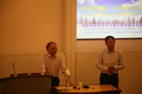5月11日晚七点,国务院学位办审计硕士指导委员会委员、中国对外经济贸易会计学会副秘书长、对外经济贸易大学国际商学院博士生导师叶陈刚教授在敏行楼102室为聚彩堂 教师和研究生作了题为《商业伦理:冲突与反思》的专题讲座。