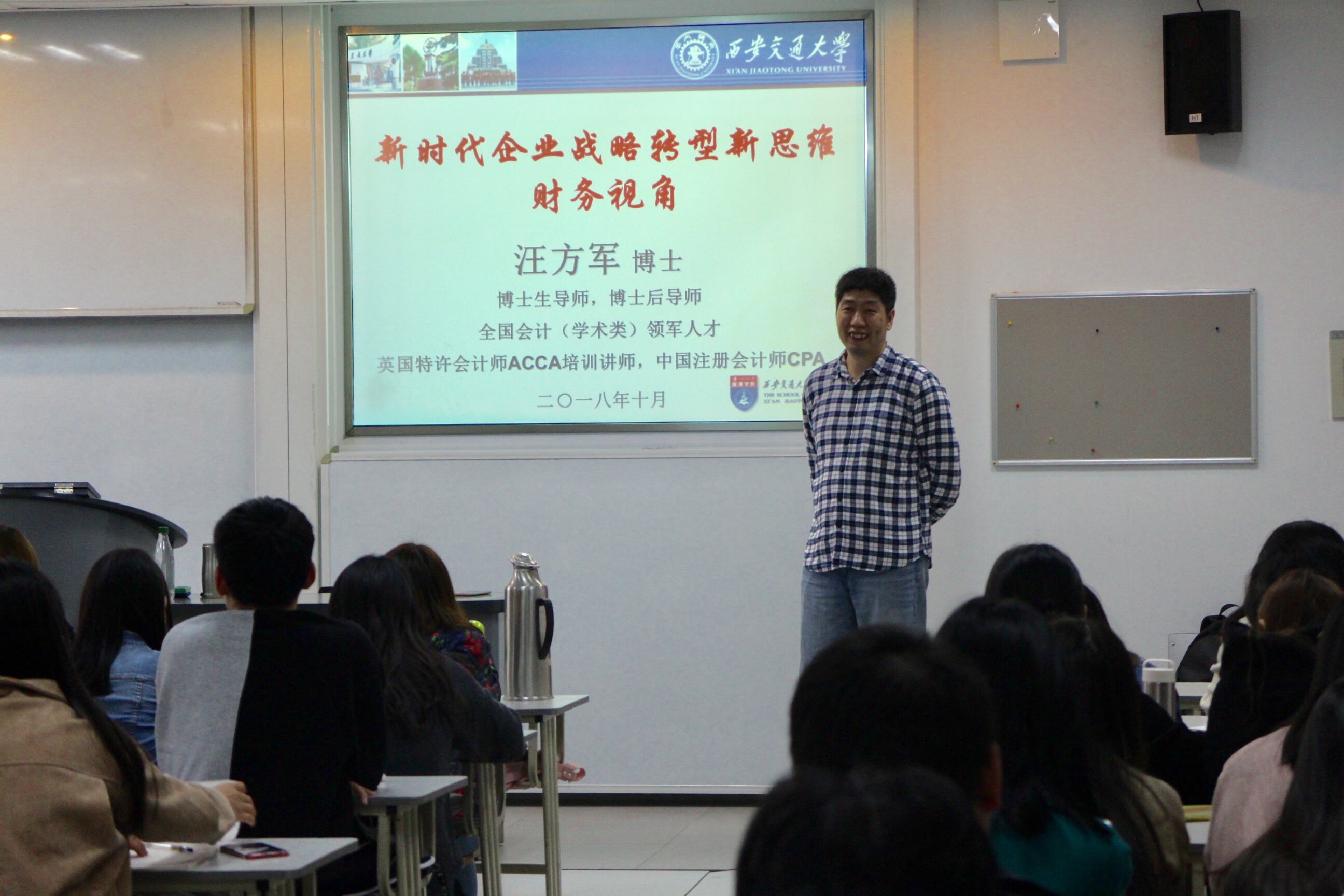 10月21日下午,应聚彩堂 、科研部邀请,西安交通大学副教授、博士生导师汪方军做客我校,于敏行楼205教室做了题为“新时代企业战略转型新思维——财务视角”的专题讲座。学院师生济济一堂认真聆听了报告,聚彩堂 殷俊明院长主持了本次讲座。