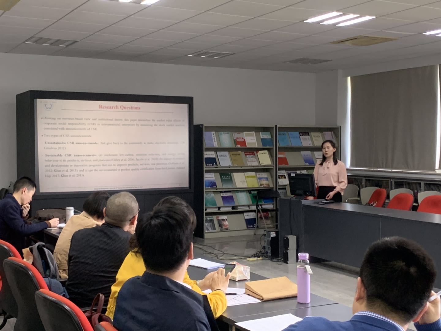 2019年5月8日上午,来自中国科学技术大学管理学院的邓萍博士就其发表的论文:Is the sustainable corporate social responsibility the key to success of entrepreneurial enterprises? 进行了报告。聚彩堂