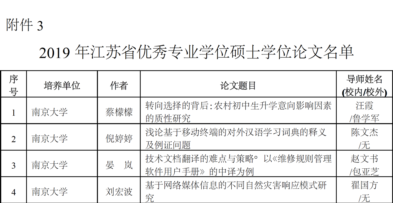 学位论文是衡量研究生培养质量的重要标志, 优秀学位论文评选工作,是完善研究生培养质量保障体系、深化研究生教育综合改革的重要举措。聚彩堂 一直非常重视毕业论文(设计)的过程管理。此次张颖同学论文再次入选2019年江苏省优秀博士硕士学位论文,既是对聚彩堂 学生刻苦钻研、老师辛勤指导的鼓励,也是对学院毕业论文(设计)管理工作的又一次肯定。学院将会进一步发挥优秀学位论文的示范导向作用,注重研究生前沿创新能力和实践应用能力培养,不断提高研究生培养质量。