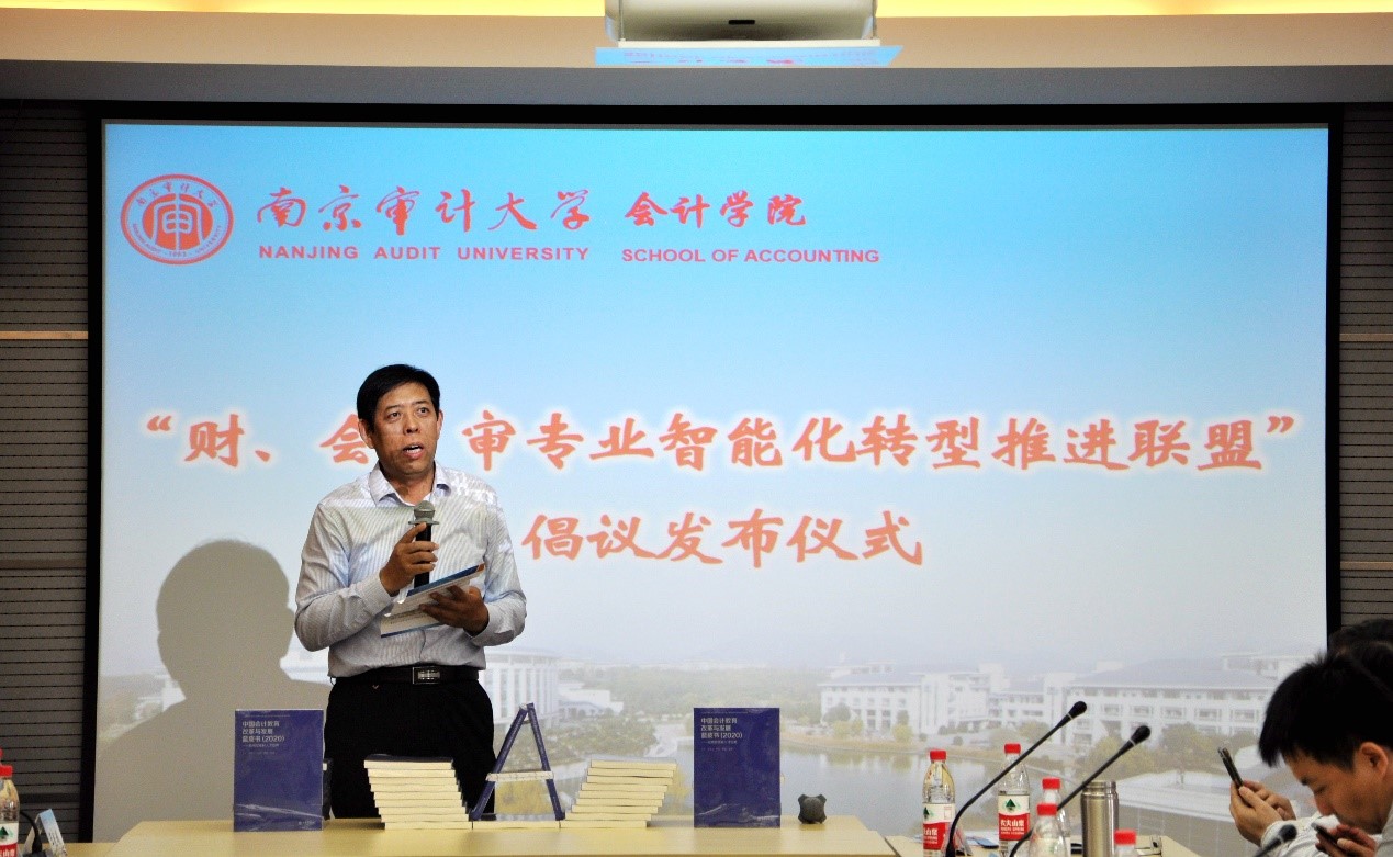 2021514,由中国会计学会会计教育专业委员会主办、南京审计大学承办的“中国会计学会会计教育专业委员会2021年专题会议在南京审计大学召开,会议的主题是“会计学专业智能化转型的教育改革与推进落实”。在开幕式环节,发布了《关于成立“财会审专业智能化推进联盟”的倡议》,发布仪式由中国会计学会会计教育专业委员会副主任委员、广东财经大学原校长王华教授主持。《倡议书》由南京审计大学温素彬教授宣读。