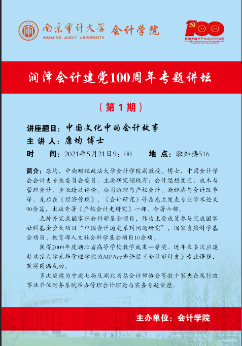 润泽会计建党100周年专题讲坛:康均-中国文化中的会计故事