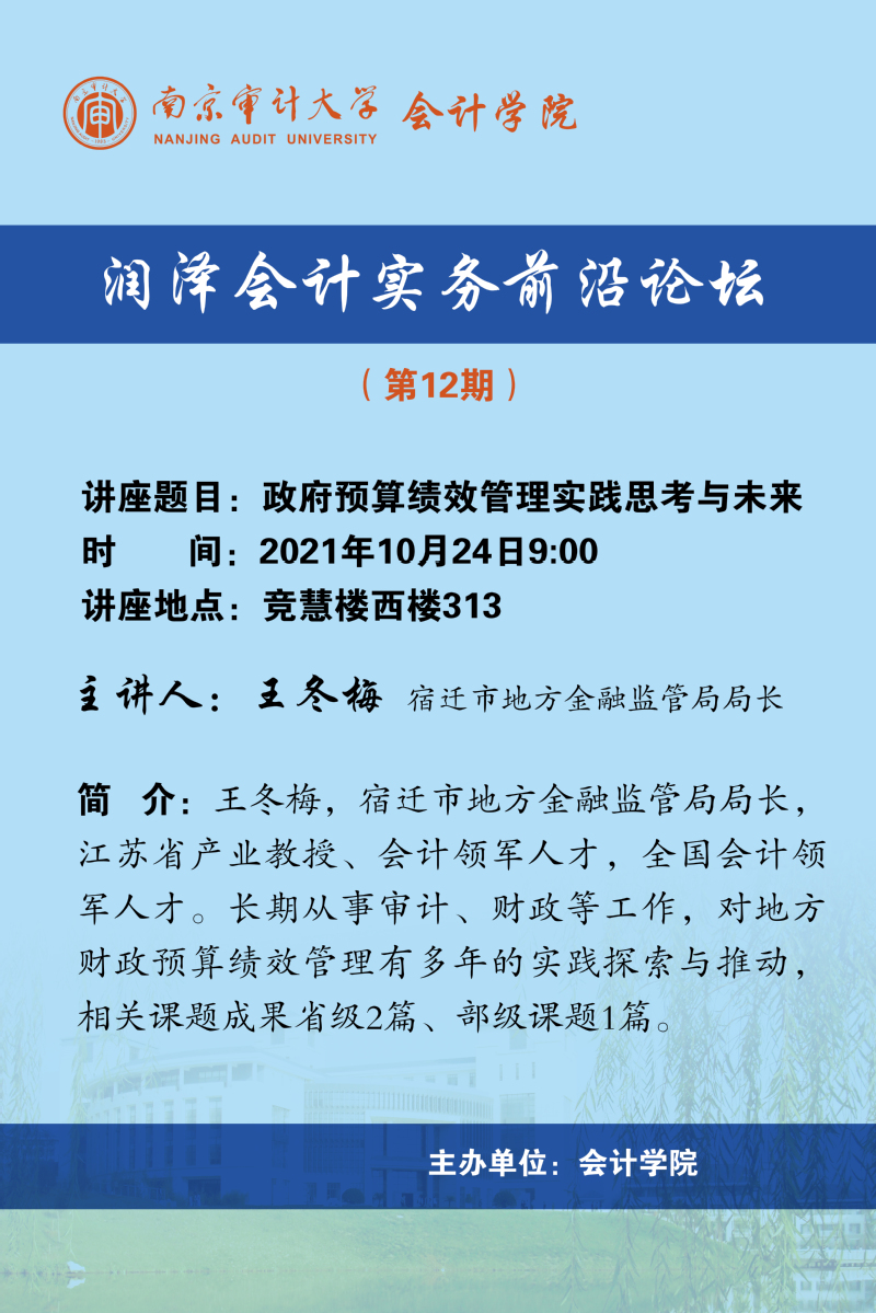 润泽会计实务前沿讲坛第12期:王冬梅-政府预算绩效管理实践思考与未来