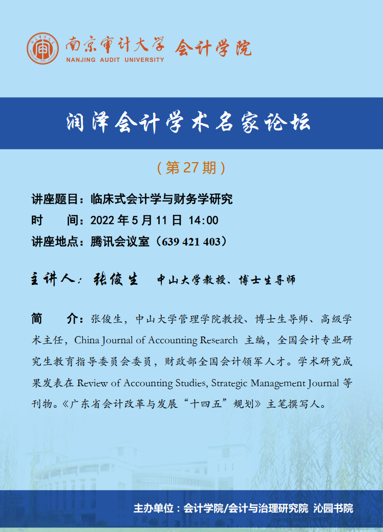 润泽会计学术名家论坛第27期:张俊生-临床式会计学与财务学研究