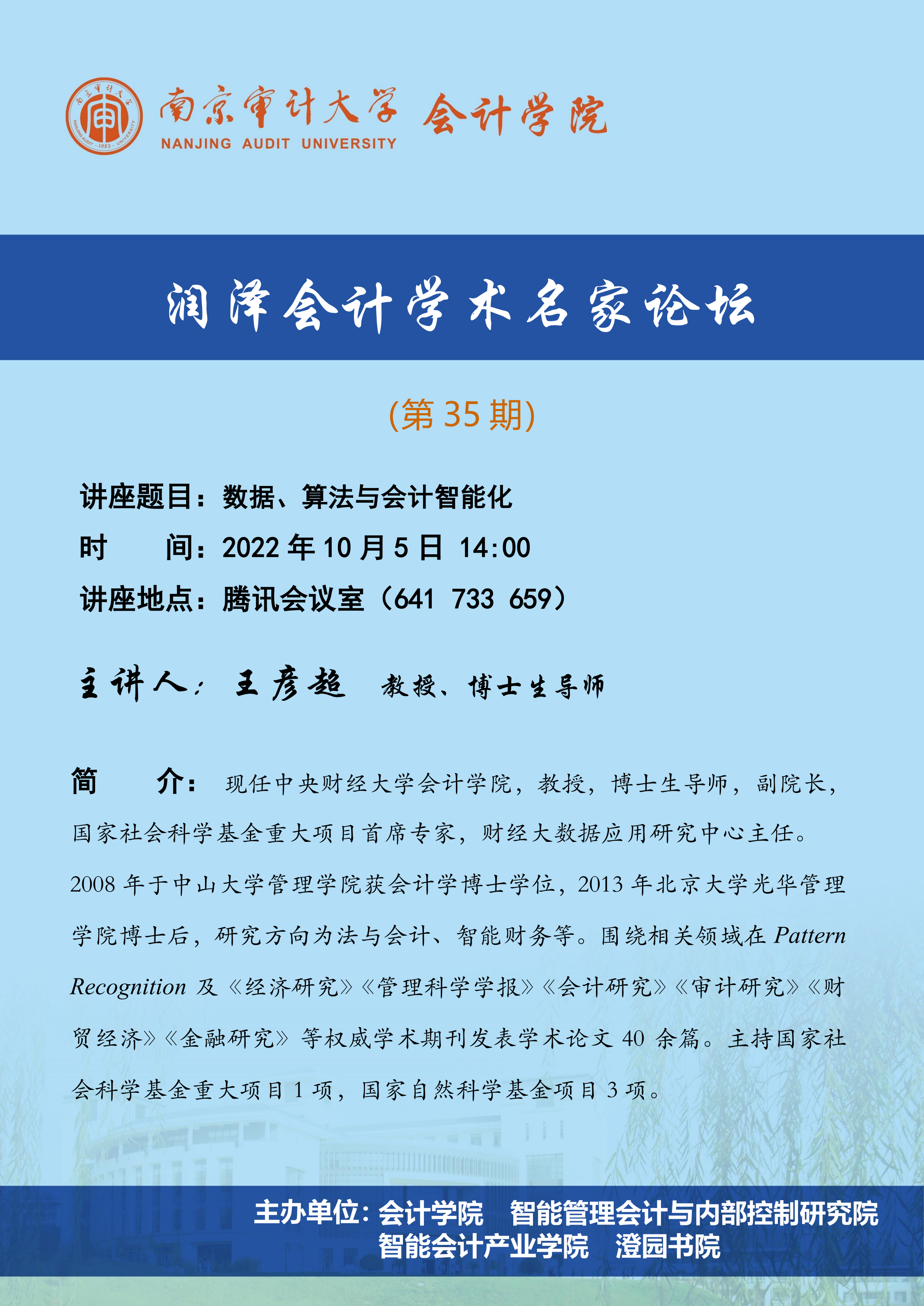 润泽会计学术名家论坛第35期:王彦超-数据、算法与会计智能化