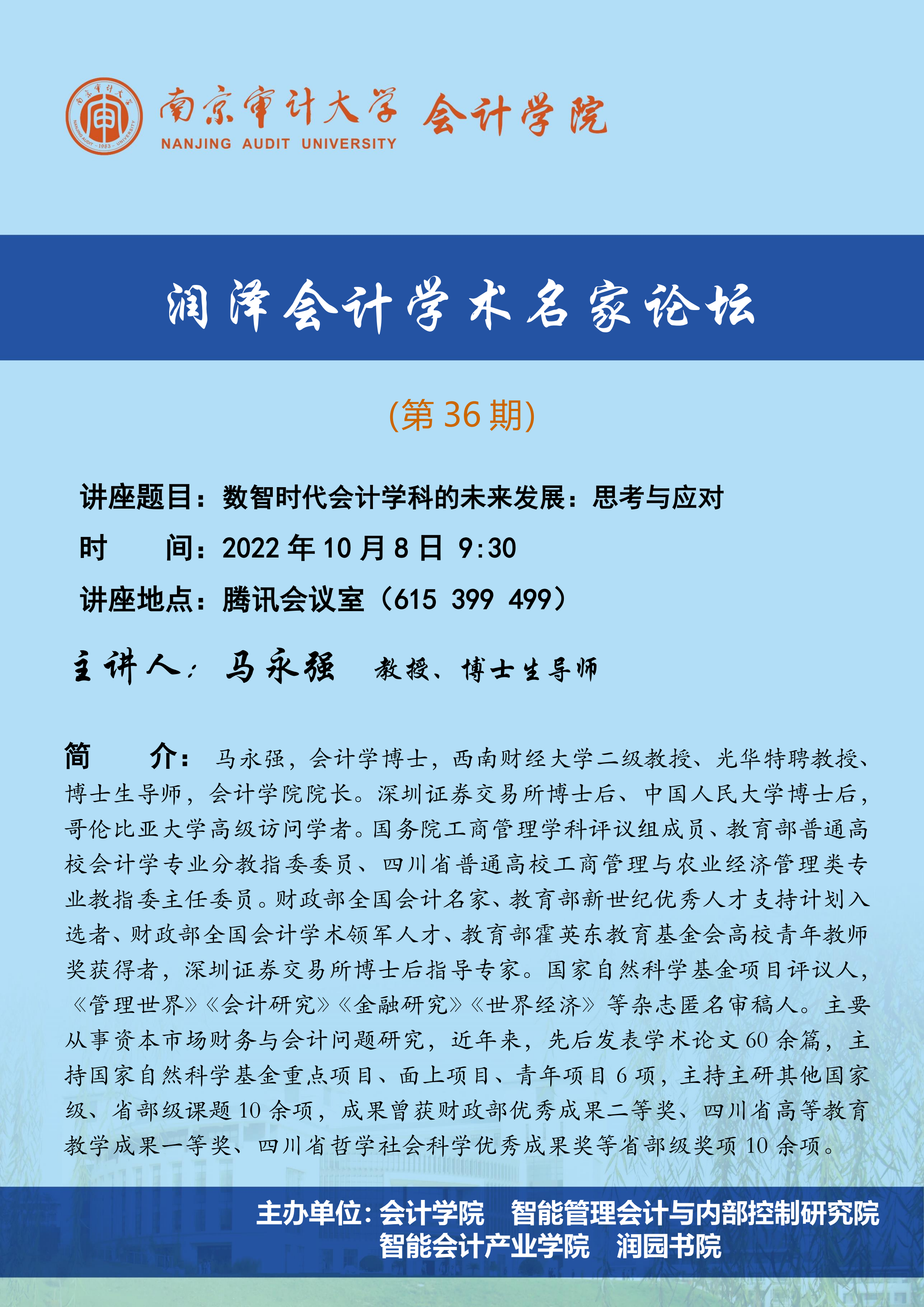 润泽会计学术名家论坛第36期:马永强-数智时代会计学科的未来发展:思考与应对