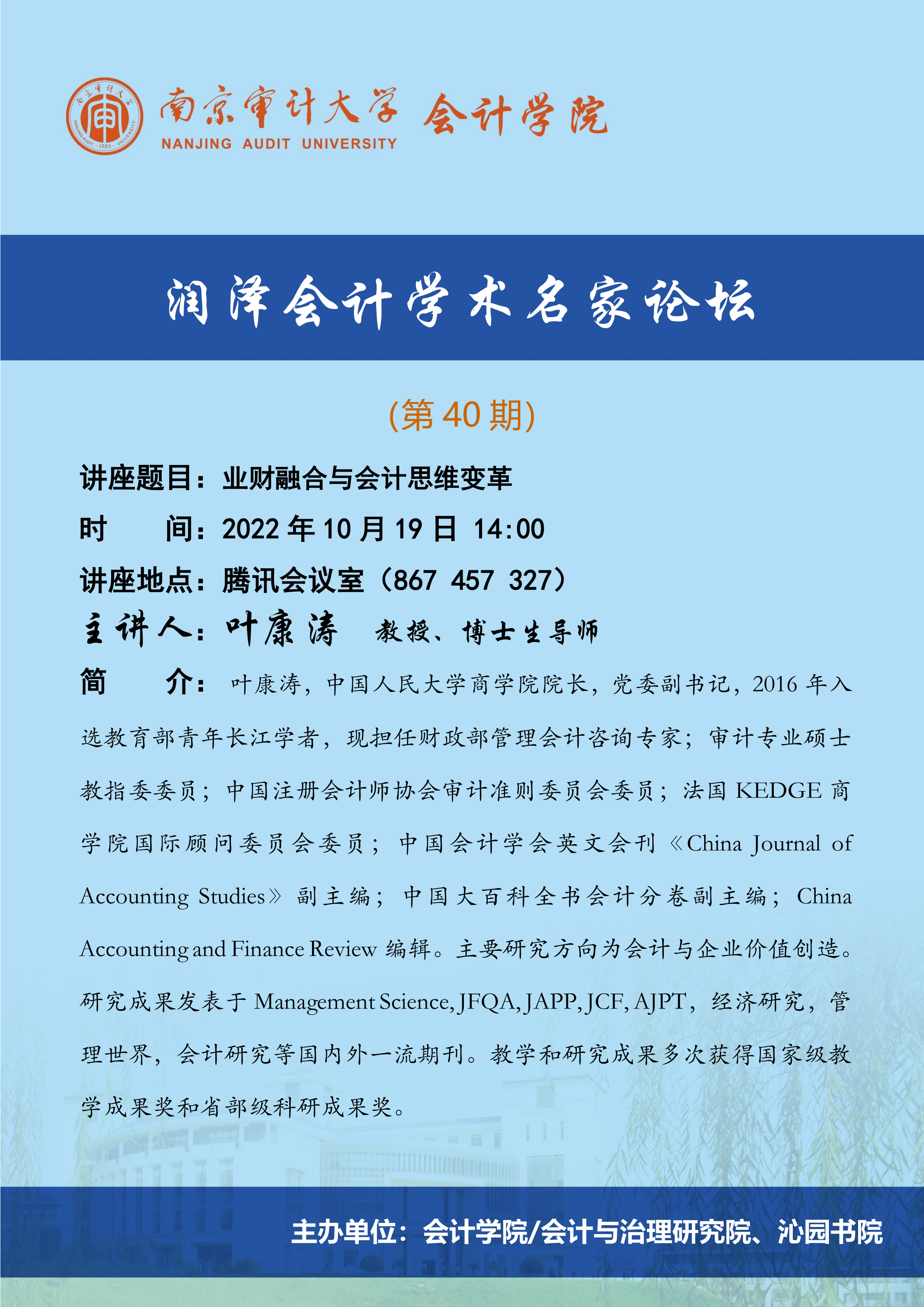 润泽会计学术名家论坛第40期:叶康涛-业财融合与会计思维变革