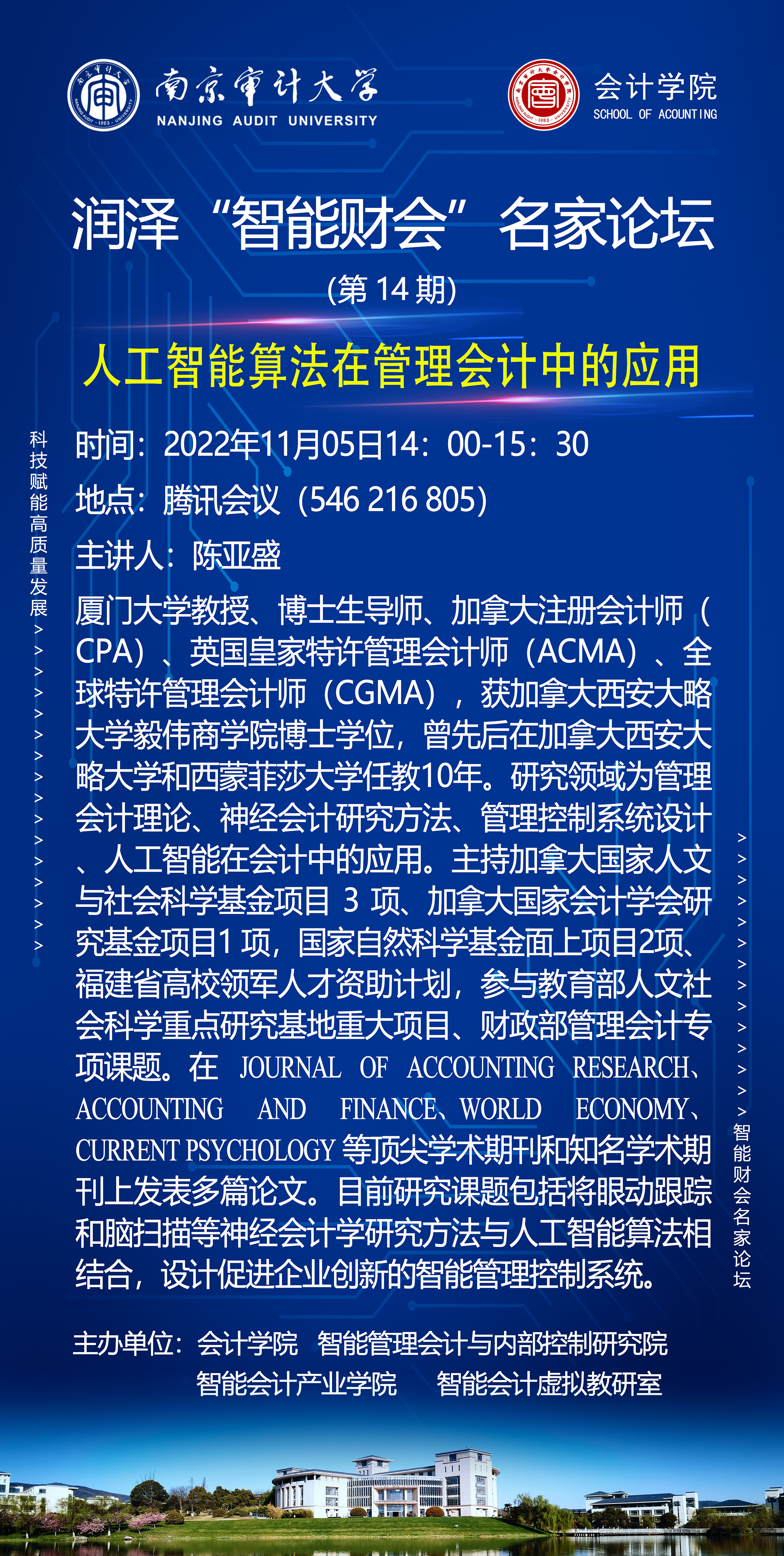润泽“智能财会”名家论坛第14期:陈亚盛-人工智能算法在管理会计中的应用