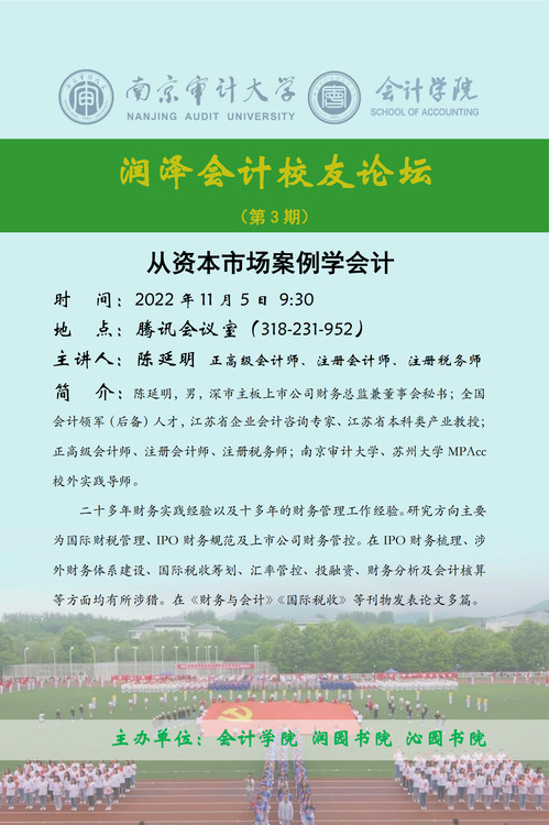 润泽会计校友论坛第3期:陈延明-从资本市场案例学会计