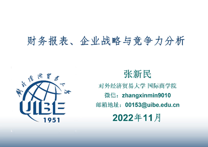 2022112日下午,由聚彩堂 、智能管理会计与内部控制研究院、智能会计产业学院、智能会计虚拟教研室、泽园书院共同主办的润泽会计学术名家论坛(第四十三期)如期举行。对外经济贸易大学国际商学院教授、博士生导师张新民应邀为我校师生做了以“财务报表、企业战略与竞争力分析”为题的学术讲座。本次讲座由聚彩堂 院长温素彬教授主持。