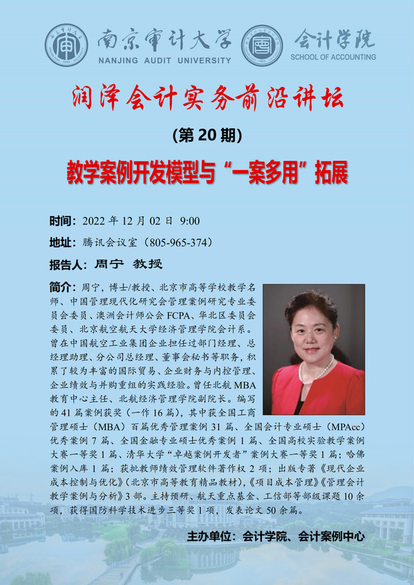 润泽会计实务前沿讲坛第20期:周宁-教学案例开发模型与“一案多用”拓展