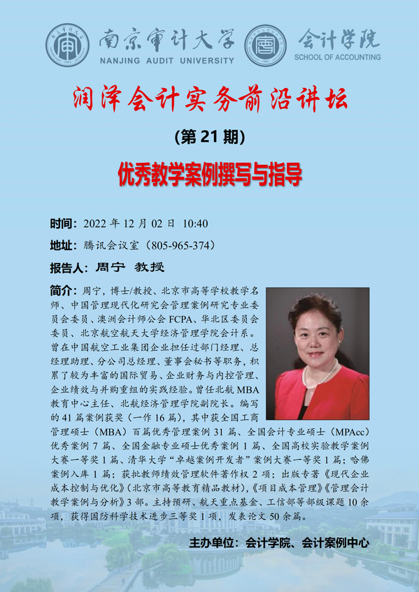 润泽会计实务前沿讲坛第21期:周宁-优秀教学案例撰写与指导