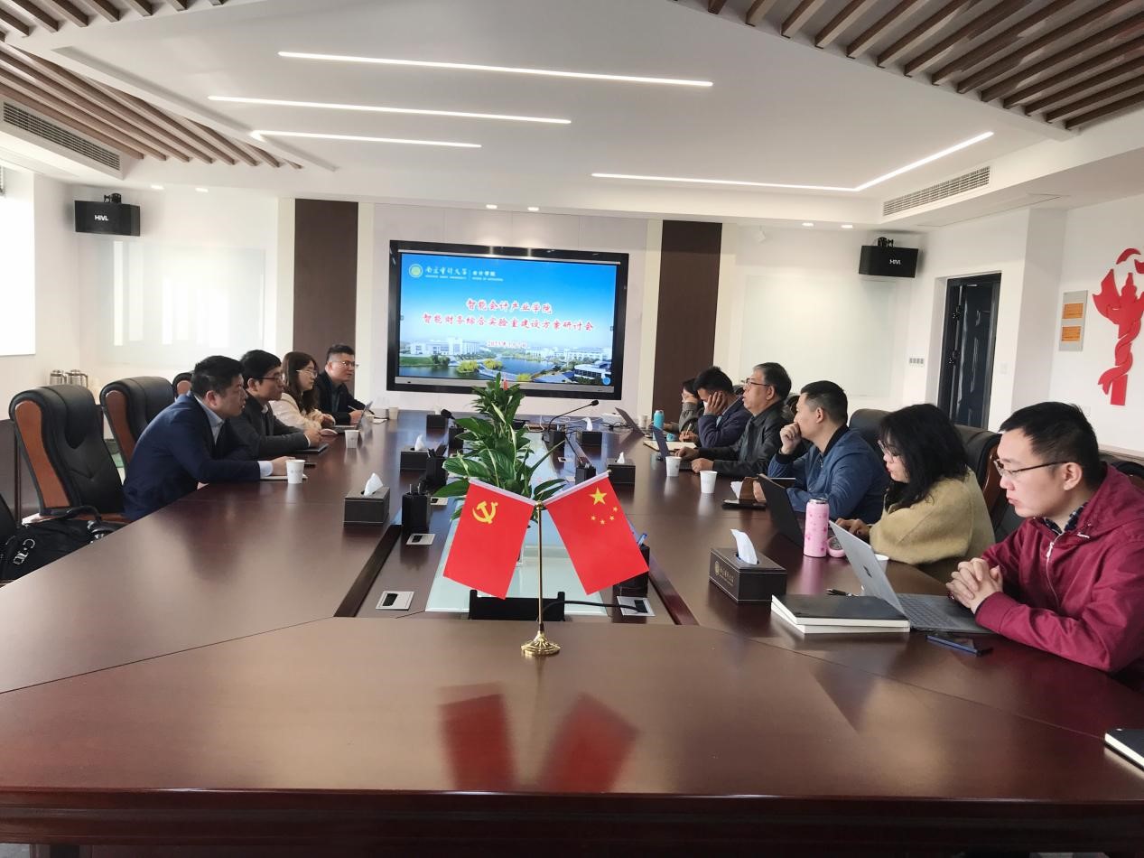3月 7日上午,新道科技副总裁贾大明、苏皖区总经理任子宜等一行到访聚彩堂 ,商讨智能财会综合实验室联合共建事宜。聚彩堂 院长温素彬、学院实验中心主任、MPAcc中心主任、教务办等人员参加研讨。会议由温素彬主持。