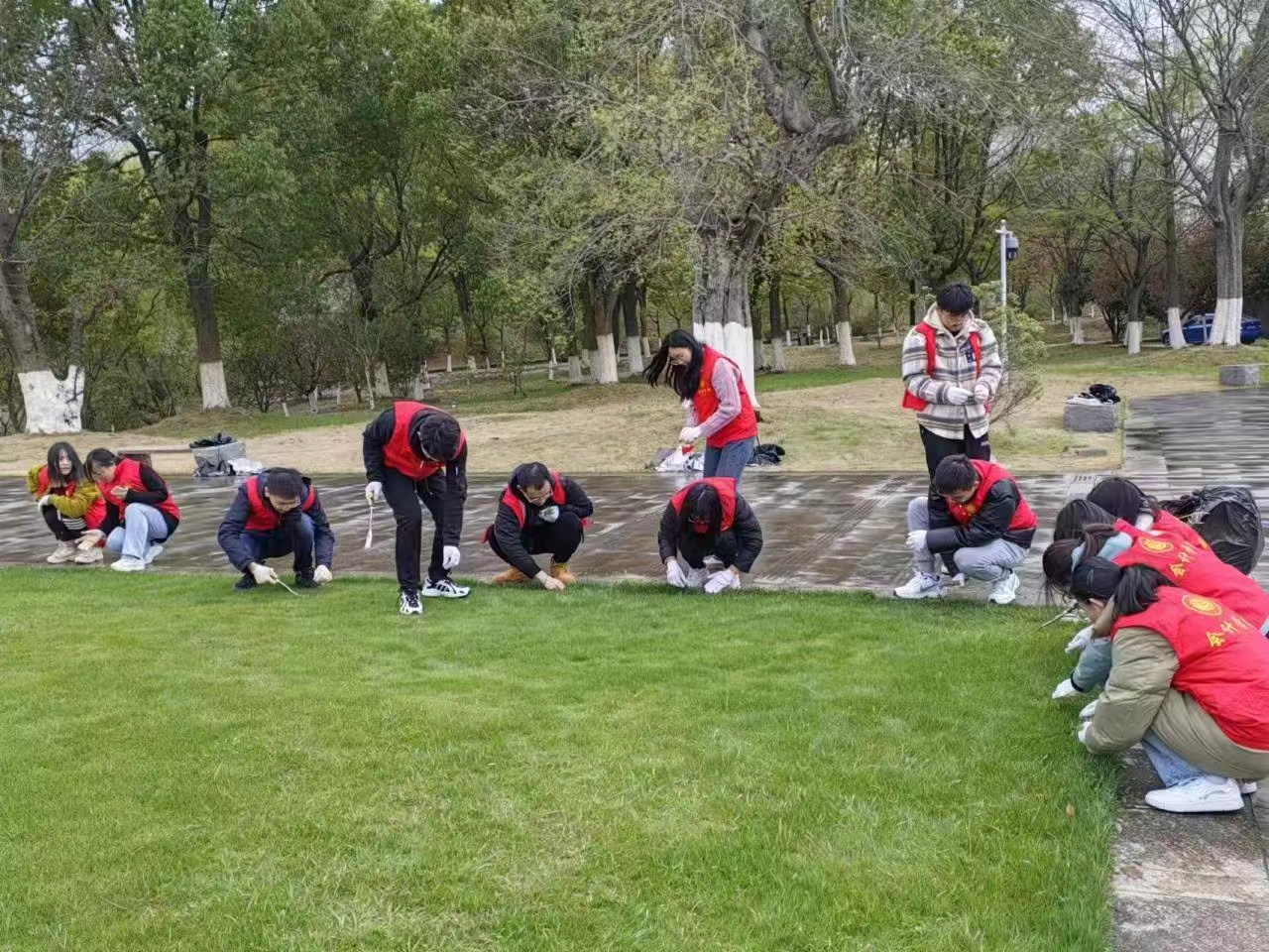 三月草长莺飞,正是大地添绿之际,聚彩堂 行政管理人员党支部、研究生党支部和研究生学生会分别开展“认养一片草坪”和“指尖绿意,爱满校园”清除杂草志愿服务活动。润泽湖边,志愿者们撸起袖子清理杂草的画面,融入了春景,充满无尽的生意。爱绿、植绿、护绿,在劳动中践行雷锋精神,美化校园环境,为实现“双碳目标”做贡献。