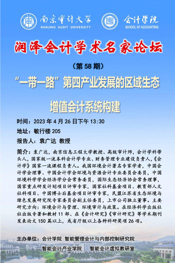 润泽会计学术名家论坛(第58期):袁广达——“一带一路”第四产业发展的区域生态增值会计系统构建