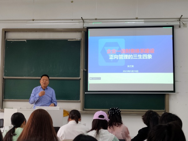 2023510日下午,聚彩堂 、智能管理会计与内部控制研究院、智能会计产业学院、智能会计虚拟教研室及江苏省会计学会管理会计专业委员会、沁园书院共同举办的江苏管理会计名家讲坛(第1期)&润泽“智能财会”名家论坛(第15期)在敏知楼302如期举行。讲座邀请了徐州工程机械集团有限公司董事吴江龙总会计师进行主题为“企业一流财务体系建设正向管理的三生四象”的学术讲座。本次讲座由聚彩堂 书记吴春梅主持。