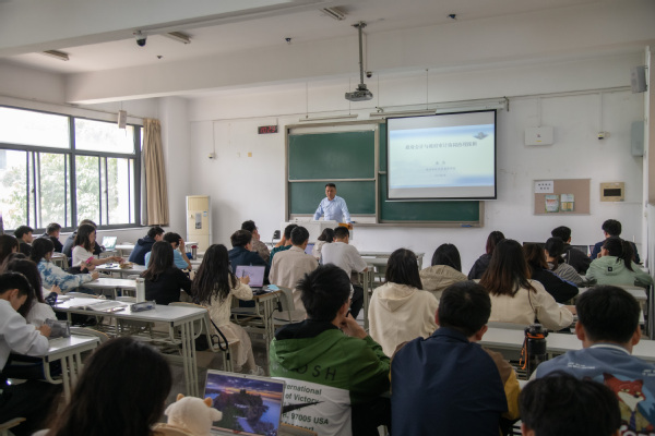 其次,潘俊根据不同审计业务类型介绍了政府会计与政府审计协同的探索方向,以往届学生的优秀论文撰写经历引导同学们发散思维、培养学术研究的兴趣,并鼓励同学撰写与发表高质量文章。