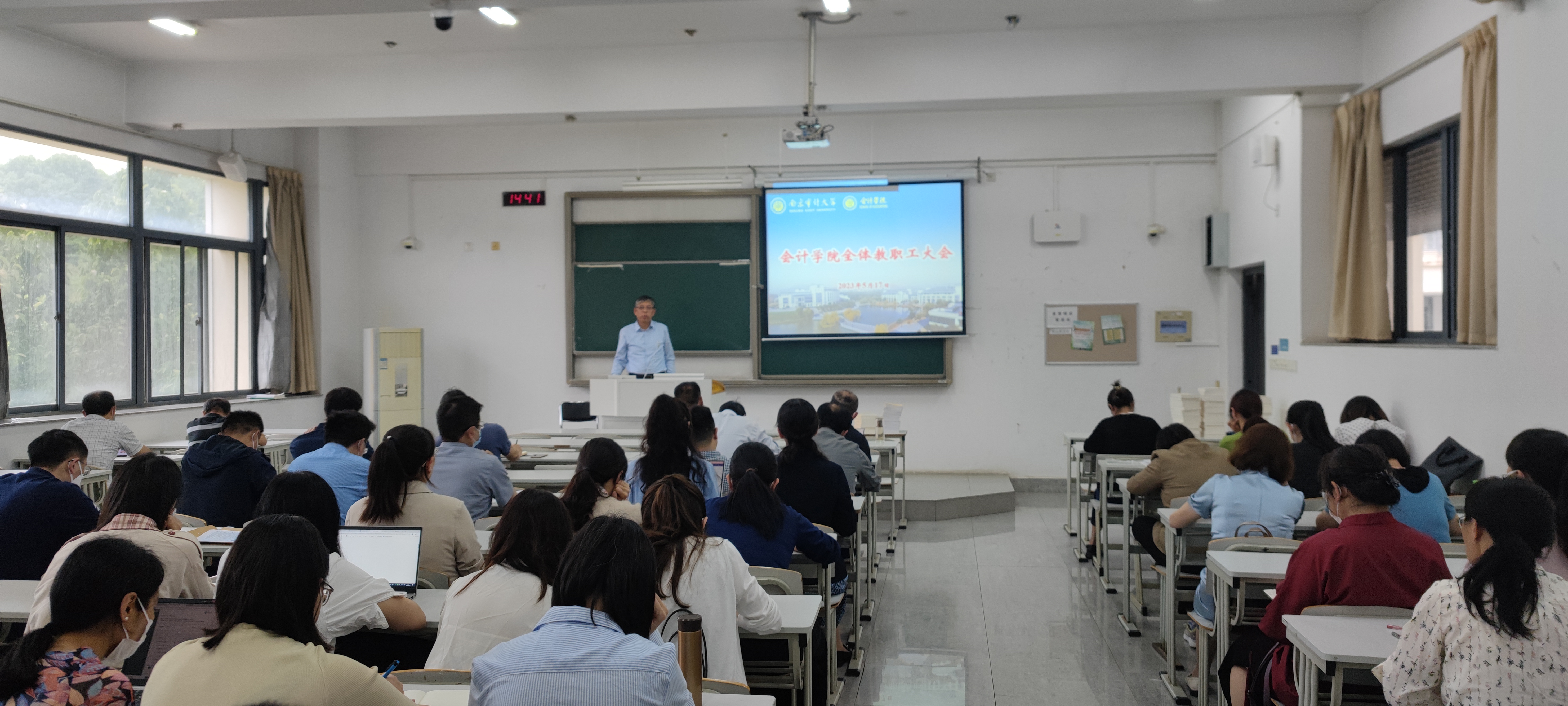 副院长黄中生、潘俊根据各自分工,对本科生毕业论文答辩、就业、课程思政优秀案例征集、微课竞赛、硕士论文答辩、MPACC质量认证工作等进行详细布置。会上,全体教职工选举产生聚彩堂 新任工会成员,王莹担任工会主席、沈静担任女工委员、任锋担任组织委员。此外,崔秀梅等7名教职工进行职称申报述职。