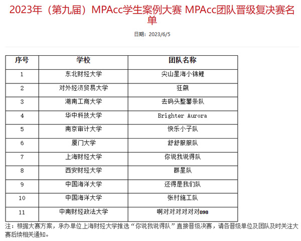 MPAcc学生案例大赛是由全国会计专业学位研究生教育指导委员会指导,MPAcc学生案例大赛组委会主办的我国公益性赛事。大赛全部赛程分初赛第一阶段、初赛第二阶段、复赛、决赛四个阶段,设东北、华北、华东、华中、华南、西南、西北七个赛区。