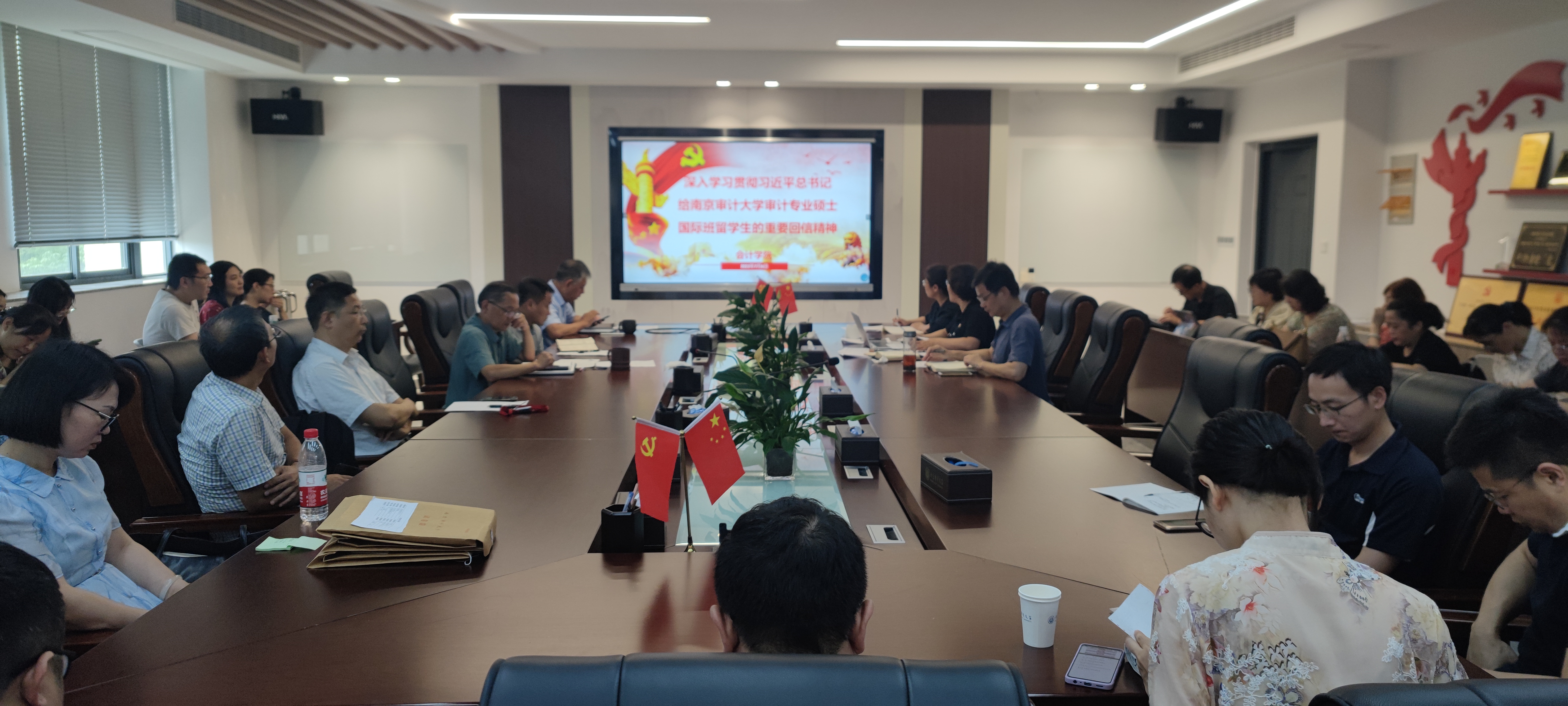 7月6日上午,聚彩堂 在敏知楼516召开员工大会,专题学习贯彻习近平总书记给我校审计专业硕士国际班留学生的重要回信精神。学院班子成员、全体教职工参加,聚彩堂 院长温素彬主持会议。