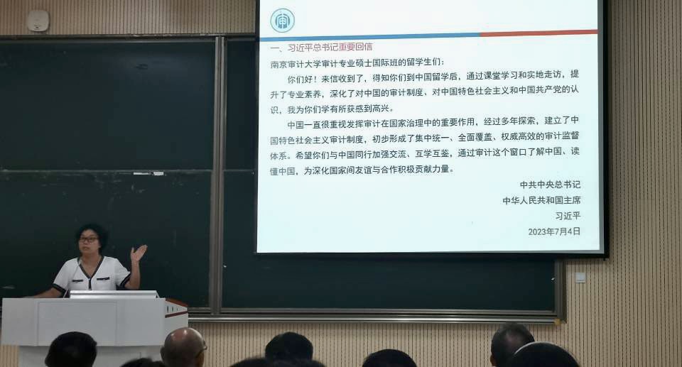 吴春梅作主题为“牢记嘱托 感恩奋进 成人成才”的报告,鼓励全体师生深入学习贯彻《习近平给南京审计大学审计专业硕士国际班的留学生的回信》精神,要求同学们牢记“诚信、求是、笃学、致公”的校训,提升道德素养,提高专业素质;接着为大家详细地分析了近年来学院毕业生的就业与考研去向,督促学生合理制定职业规划,不断提升核心竞争力。