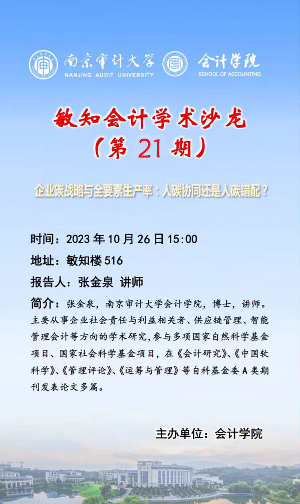 敏知会计学术沙龙(第21期):张金泉——企业碳战略与全要素生产率:人碳协同还是人碳错配?