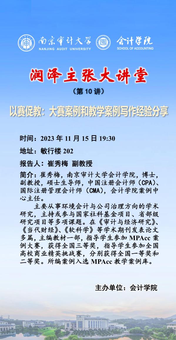 润泽主张大讲堂 (第10讲):崔秀梅——以赛促教:大赛案例和教学案例写作经验分享