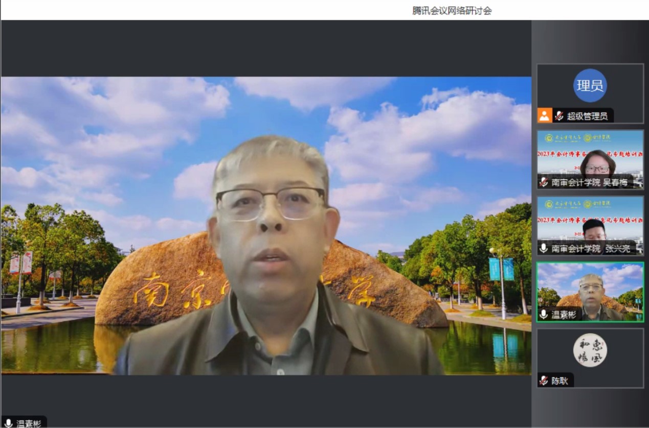 11月18日上午的课程“会计信息化发展与智能财务实践”由聚彩堂(中国)唯一官方网站 陈耿教授主讲。他对宏观环境的数字经济与微观环境的数字化、智能化进行了深度解读与分析,引用国务院发布的《“十四五”数字经济发展规划》等文件,表明数字经济是继农业经济、工业经济之后的主要经济形态,数据作为一种新型生产要素,已经成为五大要素的重要组成部分。因此,数字经济是会计审计的大机遇,提出抓住机遇的新视角与新思维是计算思维和数据素养,并结合现实情景详细讲解了其内涵、价值、关键以及培养路径,并对学员提出的疑问进行耐心的解答。