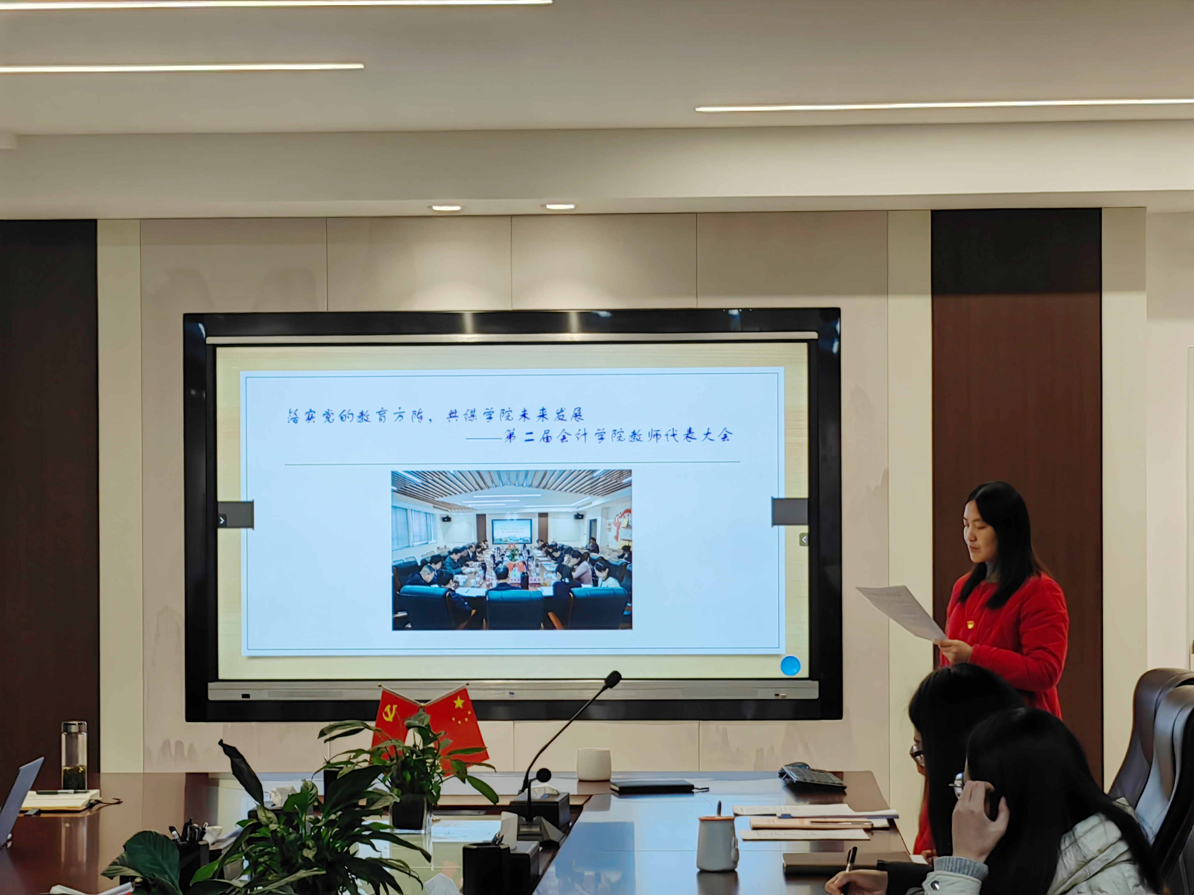 研究生第一党支部书记肖艳仔细对照责任清单从加强自身建设、推进中心工作、深化党内管理、落实组织生活以及挖不足促改进五个方面,汇报2023年度党建工作,充分展示会计专硕党支部年度工作成绩。