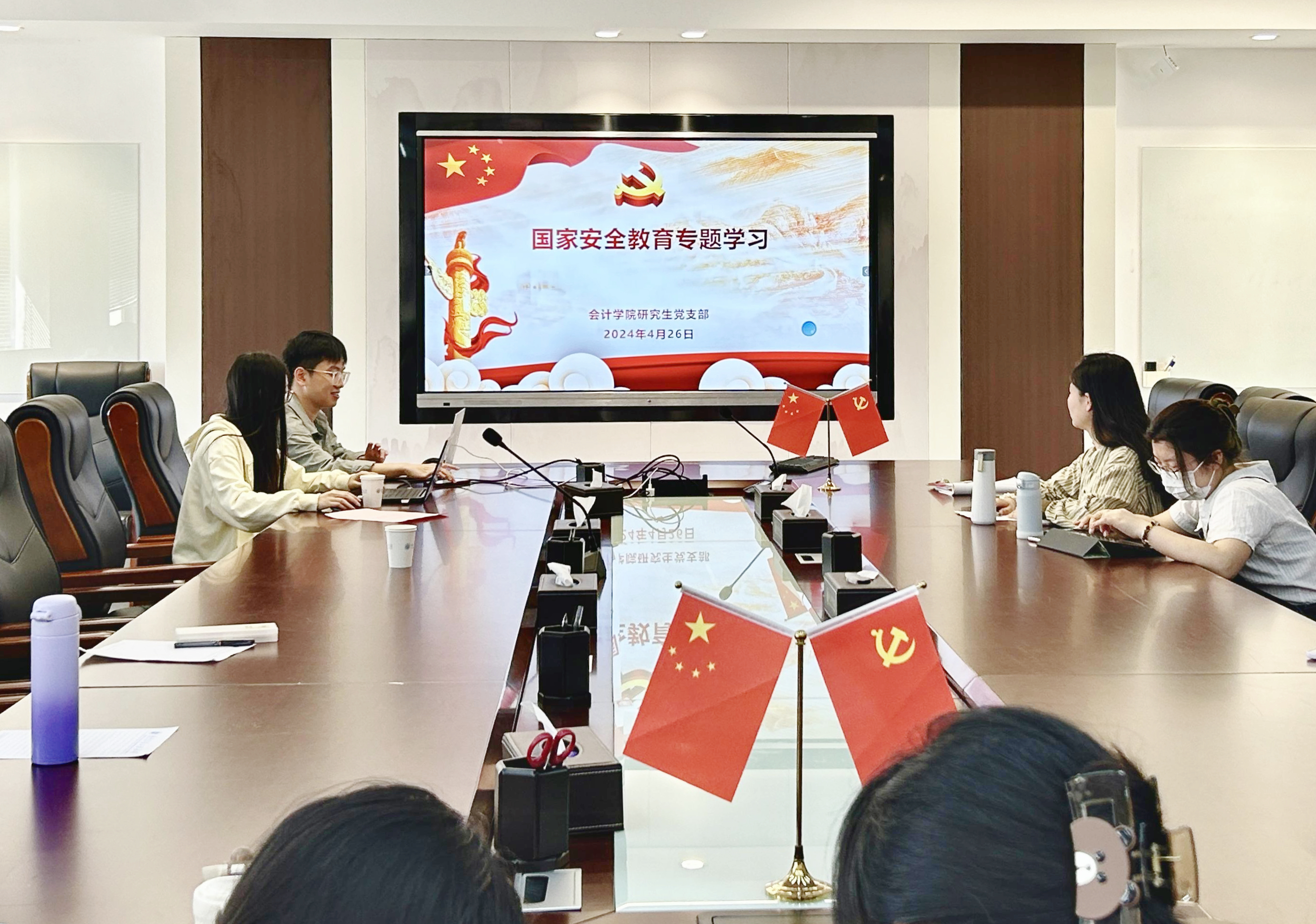 紧接着,研究生第一党支部副书记孙旭婧同志带领全体研究生党员学习和把握总体国家安全观的内涵及重要性,并指出国家安全是民族复兴的根基,党员同志要提高防范风险能力,坚定维护国家安全和社会稳定。