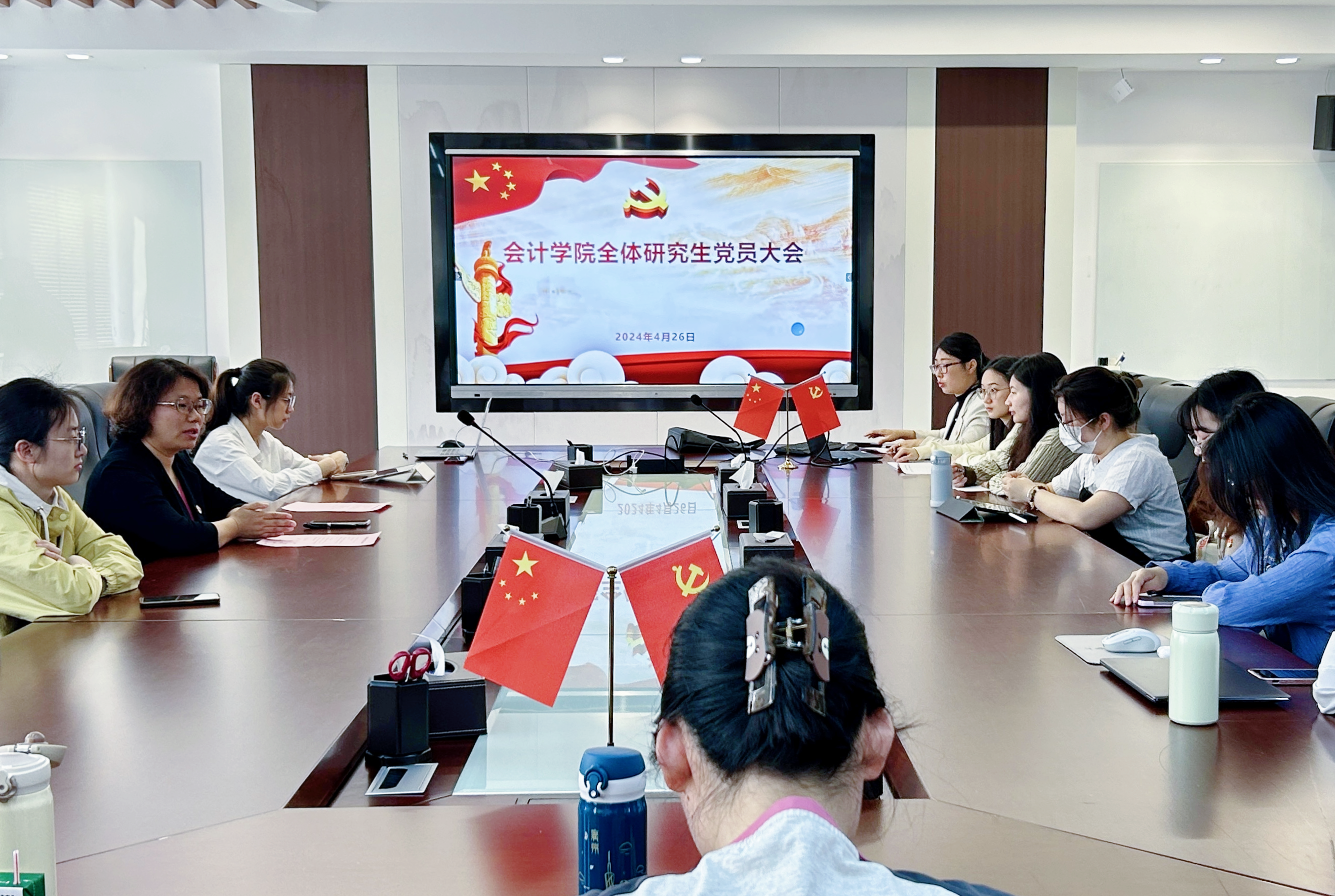 为全面贯彻落实党的二十大和二十届中央纪委三次全会精神,进一步推进党纪学习教育见实见效,做好党风廉政建设宣传教育,切实加强党员队伍建设。4月26日,聚彩堂 研究生第一、第二党支部在敏知516会议室召开全体研究生党员大会,南京审计大学关工委常务副主任吴朝国、聚彩堂 党委书记吴春梅、研究生辅导员肖艳以及全体研究生党员参加会议,会议由研究生第一党支部书记肖艳主持。