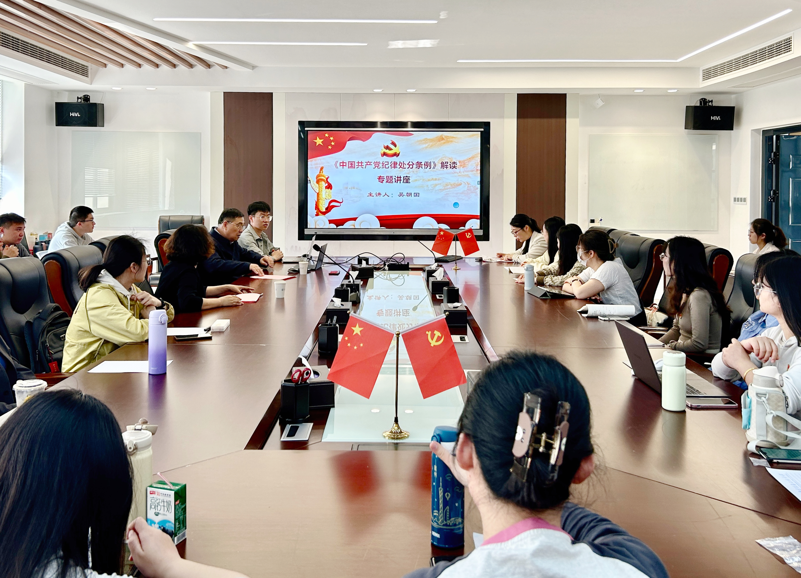 最后,学院邀请南京审计大学关工委常务副主任吴朝国为全体研究生党员作《中国共产党纪律处分条例》解读专题讲座。他首先指出《条例》作为规范党组织和党员行为的基础性法规,对于促进全党更加深刻领悟“两个确立”决定性意义和坚决做到“两个维护”具有十分重要的作用;其次,今后应进一步严明政治纪律和政治规矩,推进纪律教育常态化,加大《条例》宣传教育力度,积极营造学纪、知纪、明纪、守纪浓厚氛围,将遵规守纪刻印在心;最后,勉励党员同志们应以鲜明的政治立场、务实的政治自觉、强烈的责任担当、务实的工作作风作为行动指南,确保党的纪律和规矩得到严格执行。
