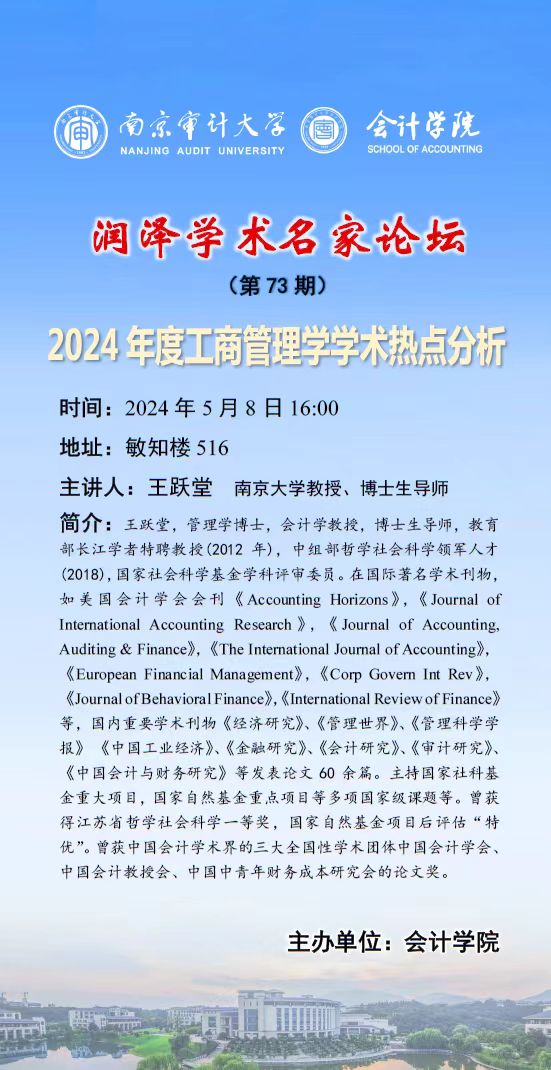 润泽学术名家论坛 (第 73 期):王跃堂 —— 2024 年度工商管理学学术热点分析