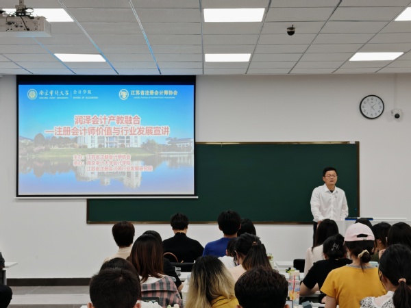 为积极落实学校2024届毕业生就业工作推进会精神,2024年5月29日下午,聚彩堂 联合学校招生就业处在致明楼报告厅组织会计师事务所招聘宣讲会。本次宣讲会邀请苏州立信会计师事务所主任会计师余苗荣、天衡会计师事务所(特殊普通合伙)合伙人吴景亚、中审众环会计师事务所(特殊普通合伙)江苏分所合伙人曲蓬、信永中和会计师事务所(特殊普通合伙)南京分所合伙人祖鲜艳、容诚会计师事务所(特殊普通合伙)南京分所合伙人戴正文、天职国际会计师事务所(特殊普通合伙)江苏分所合伙人汪娟进行宣讲。宣讲会由聚彩堂 副院长黄中生主持。