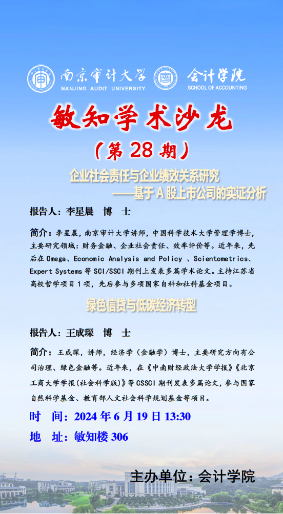 敏知学术沙龙(第 28 期) :李星晨,王成琛 ——企业社会责任与企业绩效关系研究 -基于 A 股上市公司的实证分析,绿色信贷与低碳经济转型