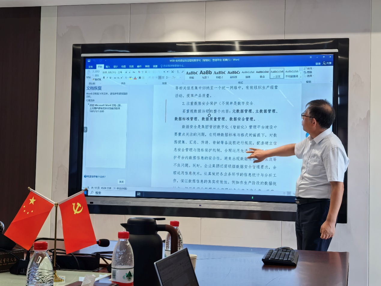首先,南京市会计高端人才项目组负责人汇报了课题案例“如何搭建集团管控数字化(智能化)管理平台”的主要内容。进而,温素彬从选题背景、案例的框架结构、核心内容等方面提出了进一步修改的建议,特别是,就案例的应用场景和智能化控制体系的设计,以及如何设计案例的问卷等方面,进行了详细的讨论。本案例是管理会计结合数智化转型的一个综合应用案例,来源于真实场景和应用实践。