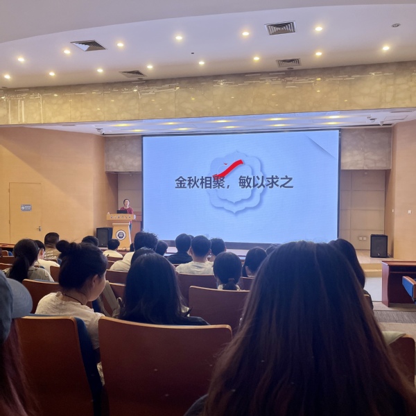 王莹以金秋相聚,敏以求之为题,鼓励同学们在研究生学习期间,继续保持积极刻苦的学习状态,培养专业知识以构建未来职业规划。通过科研讲座、学术会议、科研论文的学习,与导师、同学积极交流学习,培养良好的学术习惯和能力,以提升科研能力。