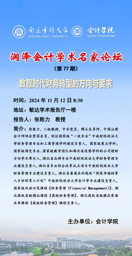 润泽会计学术名家论坛(第 77 期):张敦力——数智时代财务转型的方向与要求