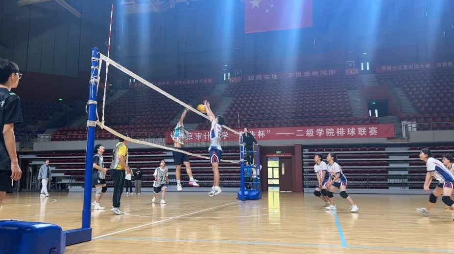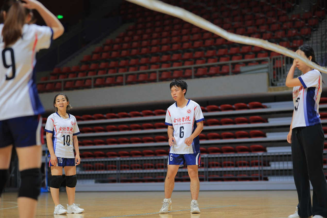 对阵社会审计学院,同学们在第一场比赛中取得胜利,并将丝毫不敢松懈的状态一直持续到后半场比赛。同学们全力以赴,场边的呐喊声和欢呼声此起彼伏。随着比赛的火热进行,同学们的状态也在不断提升。场间休息时,队长洪赛带头喊出的一声“ 加油!”吹响了球队继续进攻的号角,球员们奋力赢下每一个得分,在关键时刻放手一搏。经过全队人员的不懈努力,最终拿下了全场比赛的胜利。