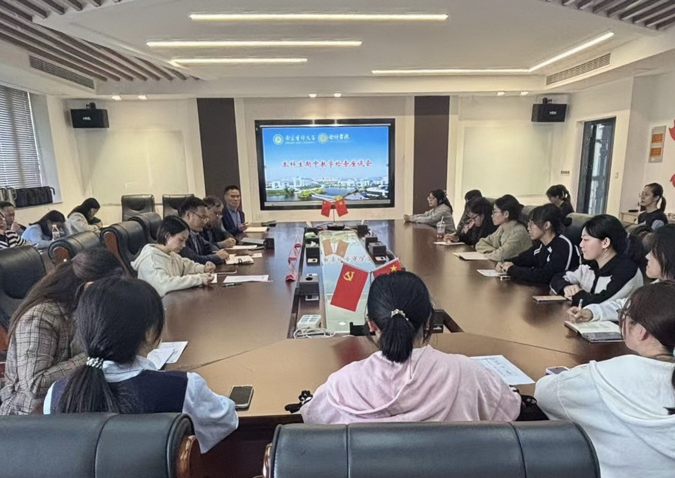 10月31日下午,聚彩堂 在敏知516会议室召开2025-2026学年第一学期期中教学检查座谈会。学院党委书记魏东胜、院长温素彬、澄园书院党委副书记周樱樱、各辅导员、系主任、教师代表及学生代表出席。