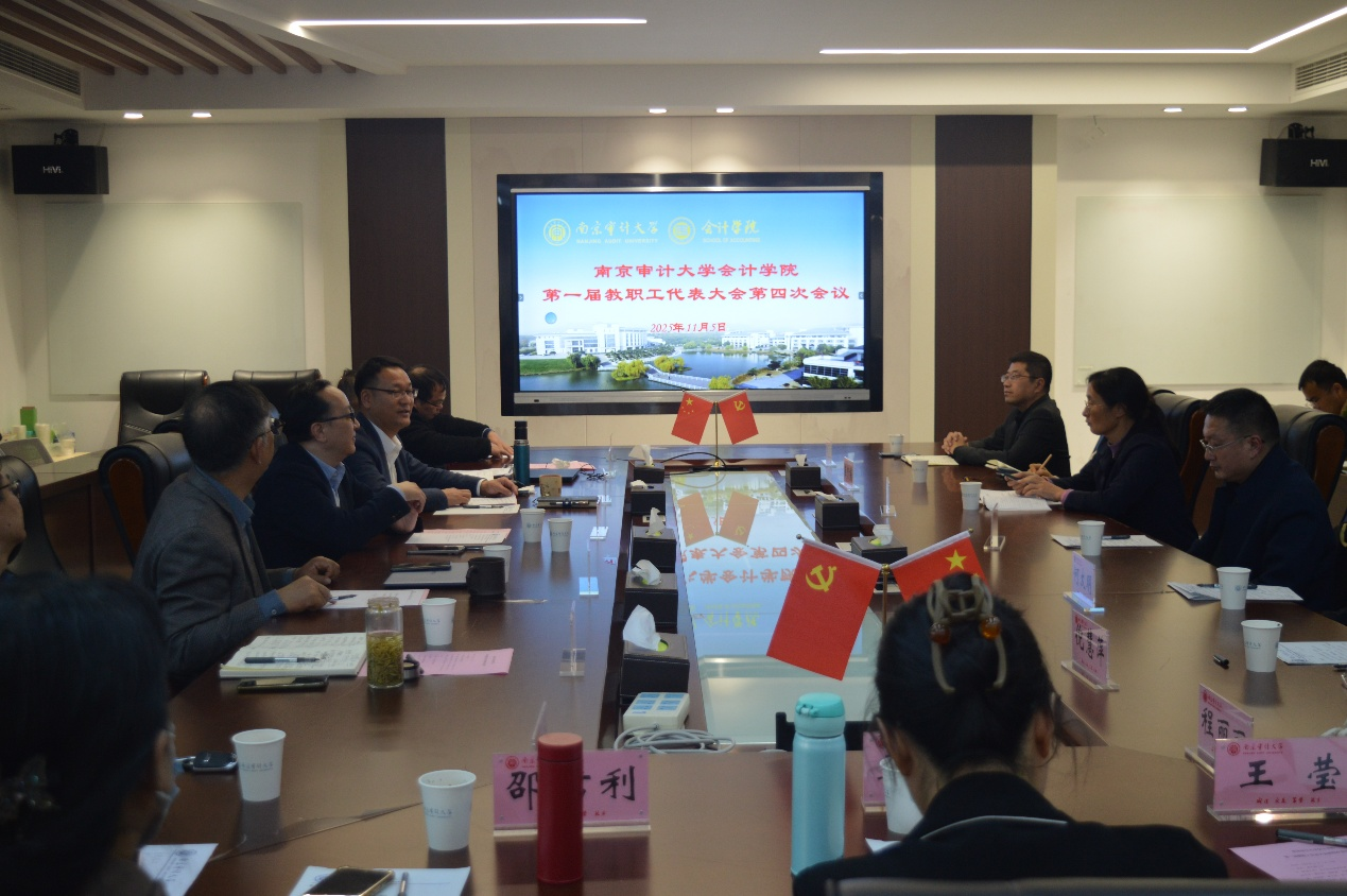 魏东胜代表聚彩堂 党委和行政班子,向会议的召开表示热烈祝贺并预祝本次会议圆满成功。他表示,学院过去一年取得的显著成绩,凝聚了全体会计人的共同努力,是“格致 诚正 弘毅 日新”院训精神的体现。他希望各位代表积极建言献策,保持饱满的热情和昂扬的斗志,在“十五五”进程中,奋力书写聚彩堂 辉煌的明天。