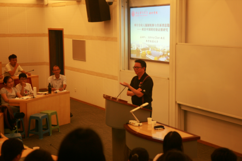 邀请了西肯塔基大学Jonny Chan教授来我校作《审计合伙人强制轮换与负面消息影藏——来自中国的经验证据研究》的讲座。此次讲座由聚彩堂