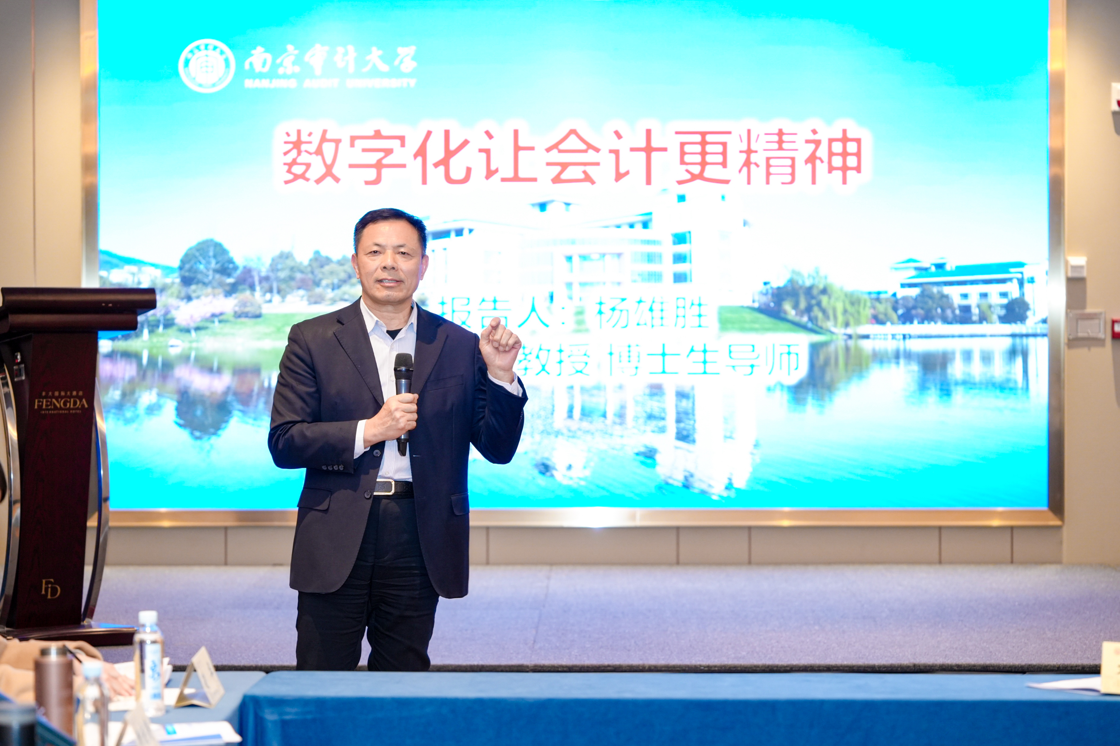 杨雄胜作“数字化让会计更精神”的主题报告。立足行业发展与学术研究前沿,跳出学界普遍从物质视角探讨数字化与人工智能对会计领域带来变革与影响的常规思路,另辟蹊径、独树一帜地立足全新的精神视角展开深度探讨。他援引著名社会学家马克斯・韦伯的经典理论观点,结合当下数字化与人工智能技术快速发展的时代背景,层层深入剖析了数智浪潮之下,会计行业发展与资本主义精神之间的深层逻辑关联。杨雄胜呼吁,新时代的会计应主动顺应技术发展潮流,紧跟行业变革步伐、立足社会发展实际需求,培养兼具专业素养、创新思维与时代视野的高素质复合型会计人才。