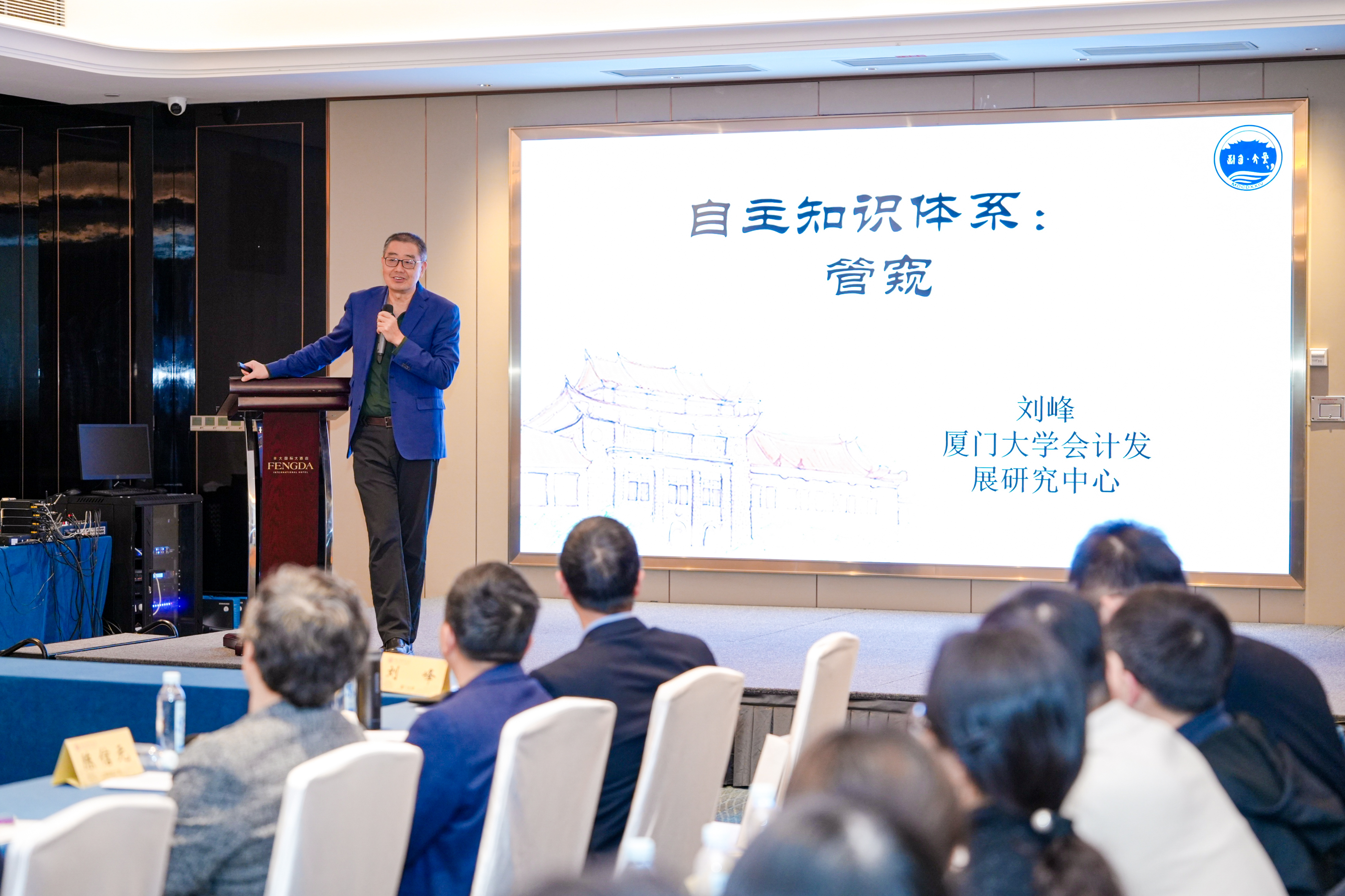 刘峰作“自主知识体系:管窥”的主题报告,主要通过数智化时代的三个场景解释了何为自主知识体系、如何构建自主体系。首先,他从数智化重构商业逻辑的角度,探析现金持有、固定资产投资、并购行为等企业投资行为的新解释,指出中国自主知识体系需要站在新的实践之上。其次,他从数智化拓展研究内容的角度,指出数智化手段为人类研究契约提供新视角,帮助我们重新认识、定义中国社会。再次,他从非正式制度是否随着真实社会发展变化而改变的视角,提出中国自主知识体系需要形成基于中国、内在一致、能够解释世界的理论。最后,他提出,中国自主知识体系的构建是一个长期、持续、动态的过程,需要各位同仁共同努力,不懈奋斗。